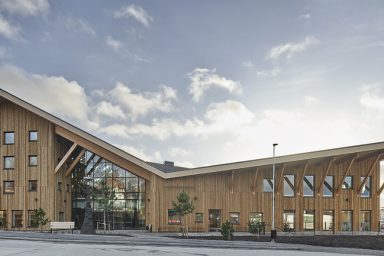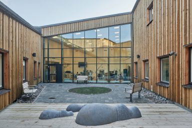 GlasLindberg i Örebro har levererat samtliga glaspartier till hälsocentrumet bestående av glasfasader, glastak samt dörrar i aluminium och stål.